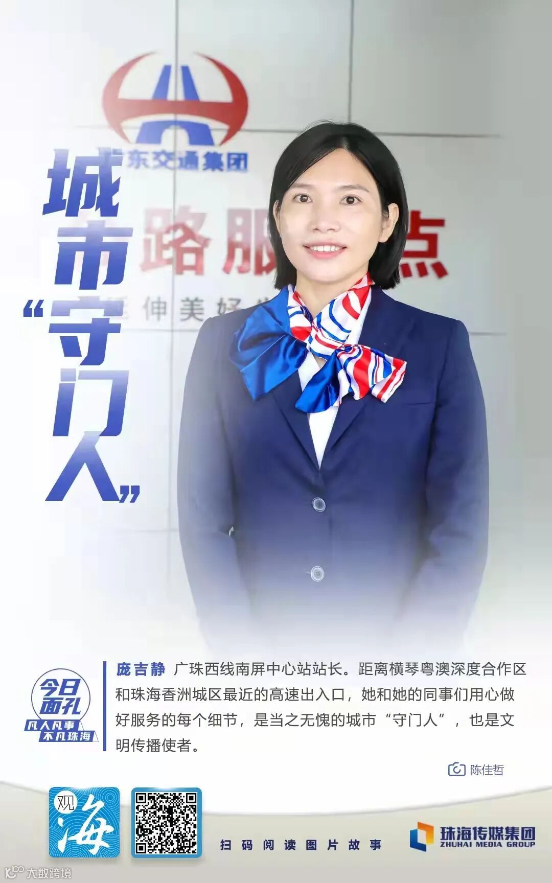 庞吉静,广珠西线高速公路南屏中心站站长。在距离横琴粤澳深度合作区和