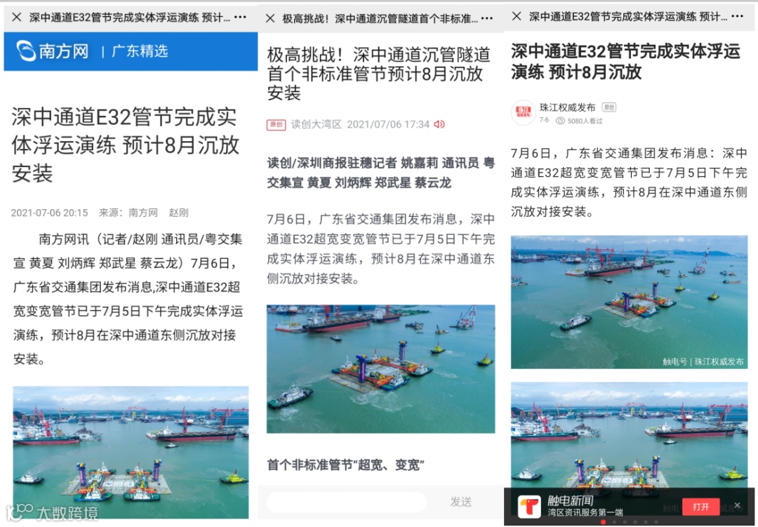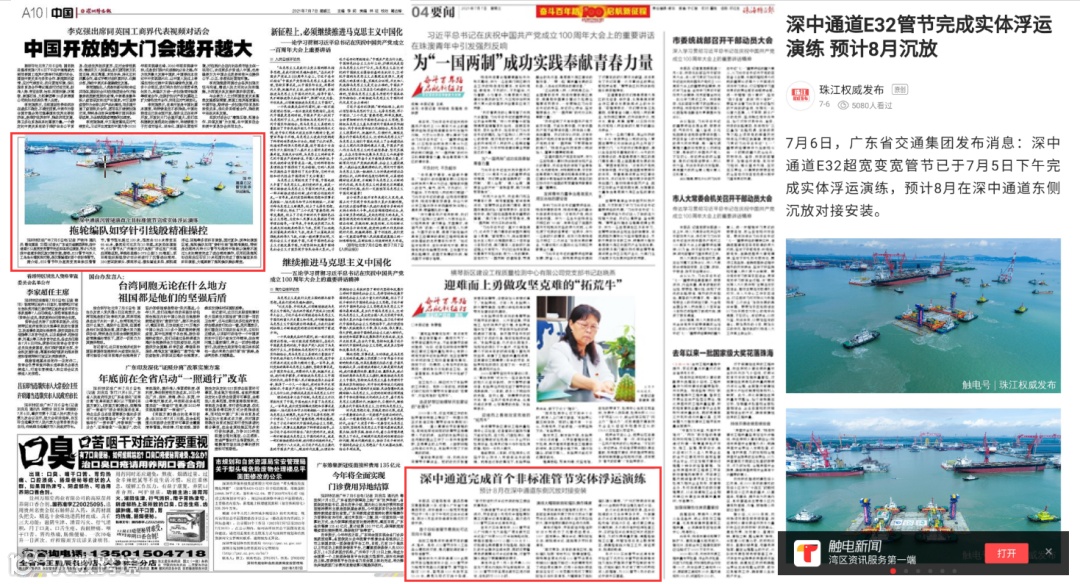 深中通道沉管隧道超宽变宽E32管节完成实体浮运演练