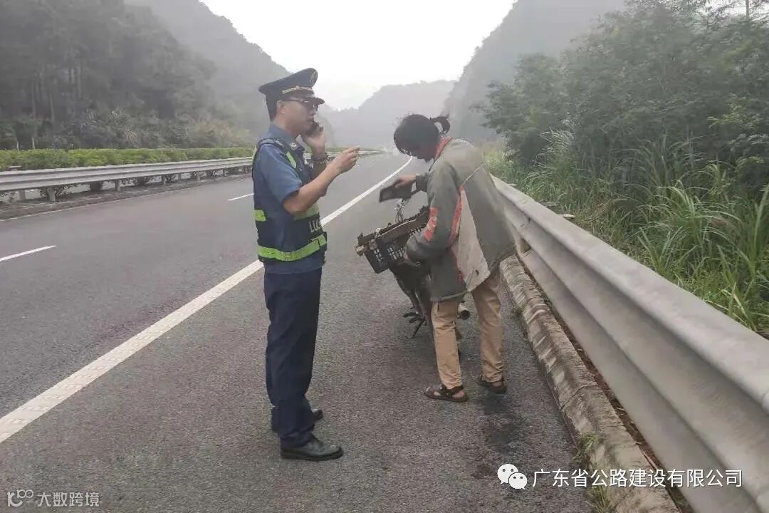 “先生,你现在感觉怎么样?”在前往罗定方向K82处,摩托车才摇摇晃晃地停下,谢义勃连忙上前询问该男子的情况,原来是汽油耗尽才停止行驶。在交谈过程中,谢义勃发现他似乎喝了酒,说话不清楚,通过拨打他提供的号码联系上其家人,才得知该男子的精神状况时好时坏。为避免出现意外,两位路政员决定先带其下高速再交由民警处理。