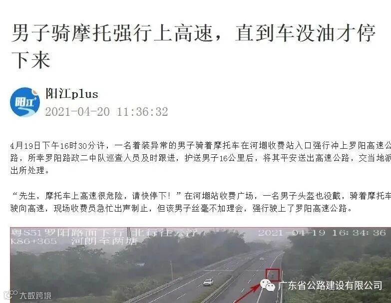 “先生,摩托车上高速很危险,快停下!”4月19日下午16时29分,在罗阳高速河塱站收费广场,一名男子骑着摩托车驶向高速,现场收费员急忙出声制止,但该男子丝毫不加理会,强行驶入高速。低速摩托车在高速行驶容易发生交通事故,十分危险。正在附近巡逻的罗阳二中队路政员谢义勃、周师武接报后,当即赶往河塱站路段护送该男子,防止发生意外。追上摩托车后,两人在摩托车后方第二车道保护其行驶安全,同时用路政车鸣笛劝阻其停下,但该男子置若罔闻。