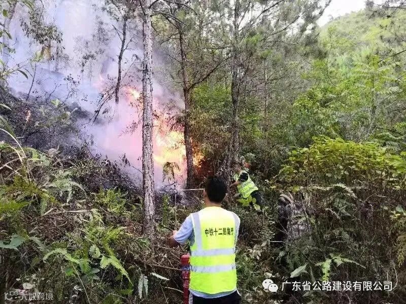 17时32分,约20名云茂高速TJ3标、TJ6标施工人员,携带手持式灭火器、铁锹到达高速边坡口,有序上山开展灭火。17时49分,地方森林公安、消防队到达现场,在消防队的指导下,项目施工人员积极协助开展灭火工作。