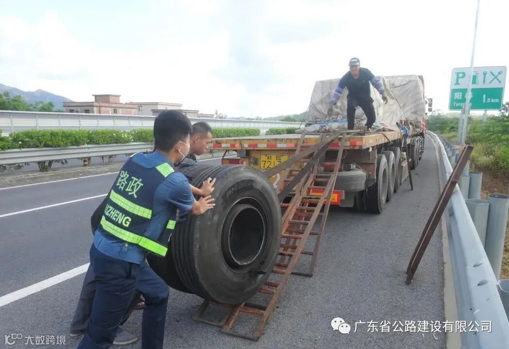 200斤轮胎“卧倒”路面,罗阳路政员紧急处置