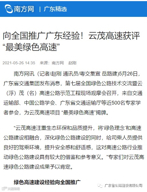 建设公司党委书记、董事长王康臣表示,授牌既是对云茂高速绿色公路建设成绩的肯定,也是对全体参建人员的鼓励,更对今后云茂高速公路的营运管理提出了更高更严的要求。为此,建设公司将在交通强国、绿色发展新理念的指导下,抓好云茂高速公路通车后的日常运营服务与养护管理,将云茂高速公路真正打造成“绿水青山”与“金山银山”之间的沟通纽带。