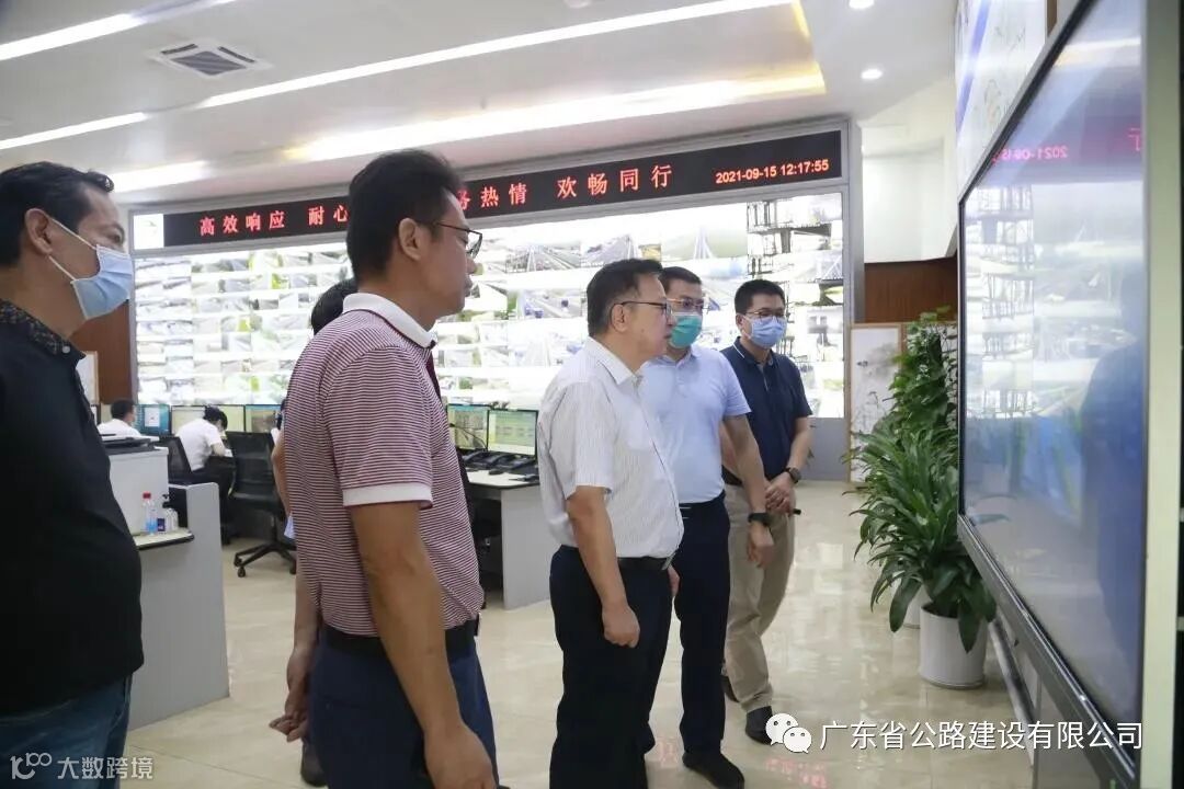 在南环段龙江管理中心,潘奇志听取了南环段分公司营运管理、基层党建、党风廉政建设、疫情防控等工作情况的汇报。随后,在南环段监控中心,潘奇志详细了解了南沙大桥“道路交通异常事件检测系统”“紧急电话及广播系统”等智慧高速“路运一体化路段平台”的应用情况。