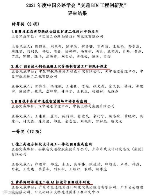 近日,由中国公路学会举办的2021年度“交通BIM工程创新奖”评选落下帷幕。