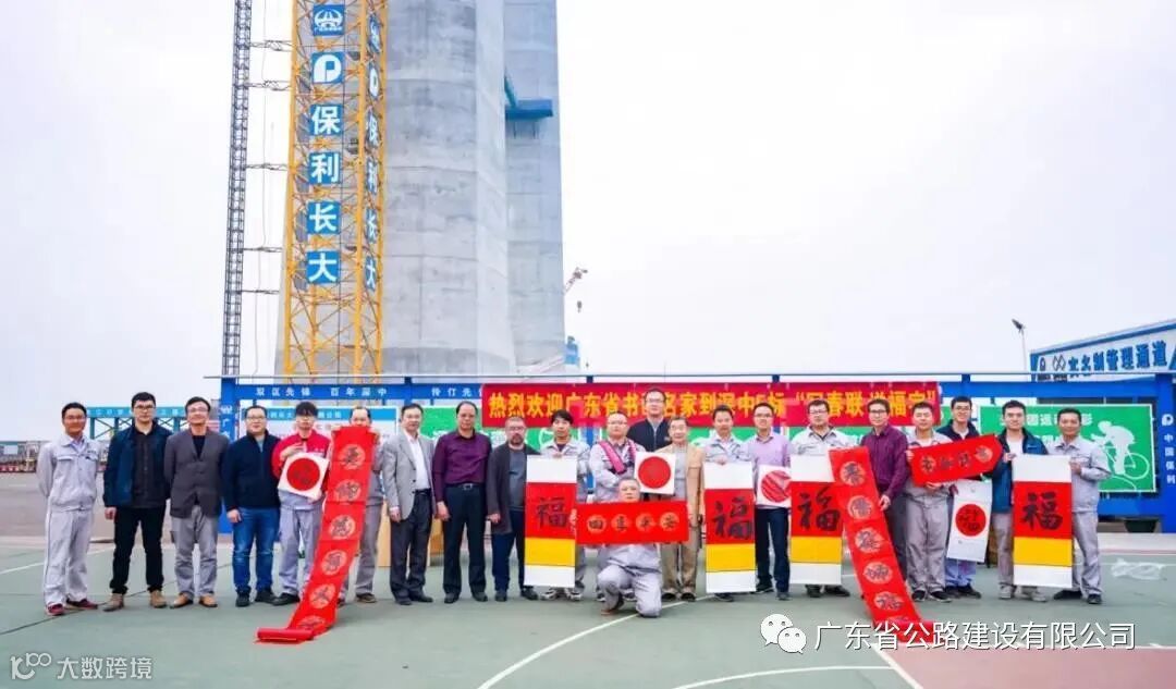 1月21日,保利长大深中通道S05合同段项目部组织广东书画名家到伶仃洋大桥海上施工平台开展写春联、写福字活动,把温暖的新春祝福送给奋战在海上施工一线的建设者。