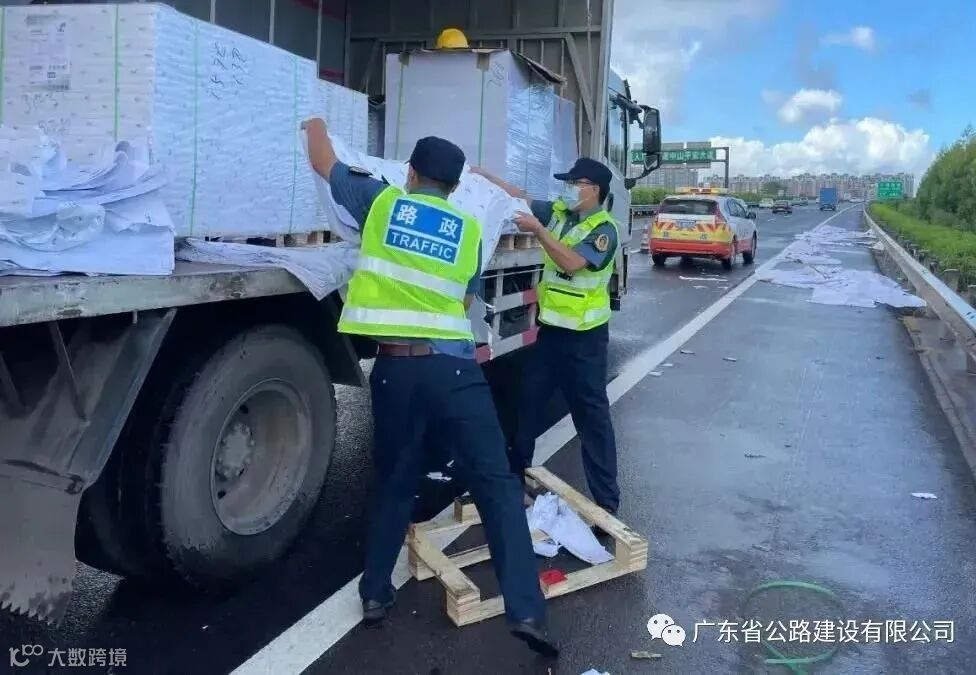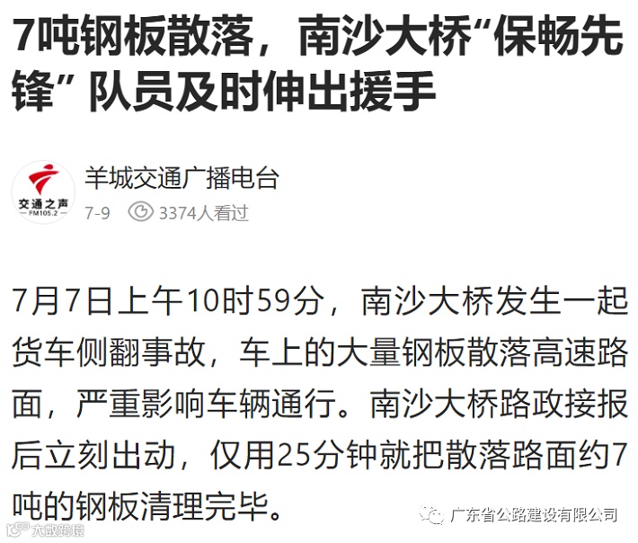 货车侧翻,南沙大桥路政员快速清理7吨钢板
