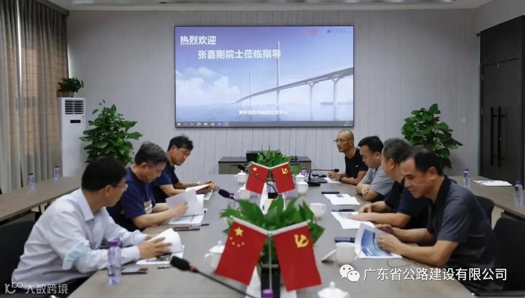 7月5日下午,中国工程院院士、中交集团首席科学家、公路长大桥建设国家工程研究中心主任张喜刚一行,到黄茅海跨海通道项目调研建设进展。