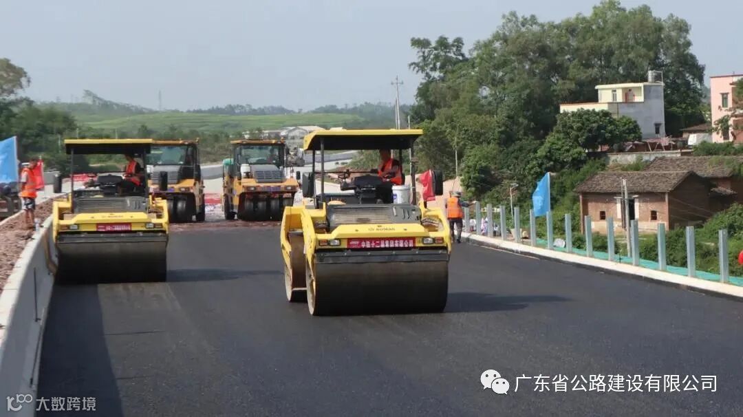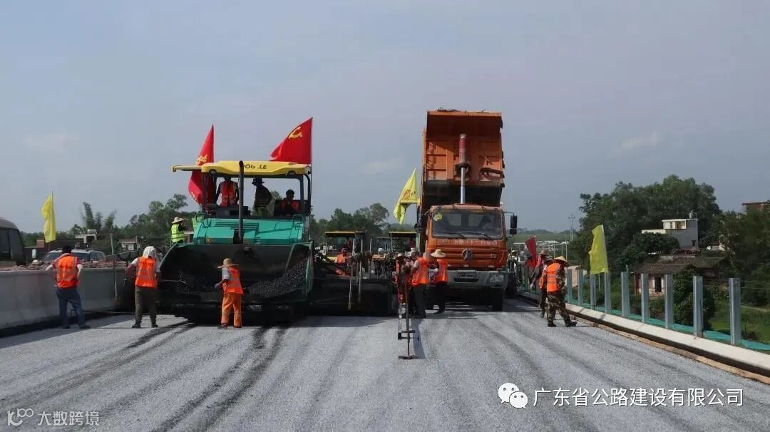 云茂高速首段沥青路面下面层试验路段顺利摊铺