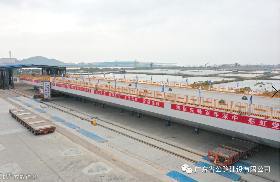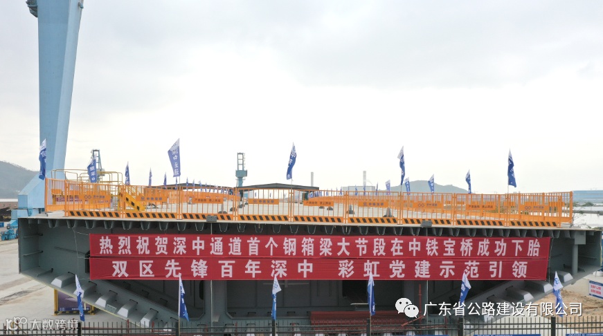 “首片钢箱梁位于伶仃洋大桥西泄洪区左幅第四联第五跨,长133.5米,宽20米,重达1670吨。”中铁宝桥深中通道G04合同段项目经理袁俊表示,“G04合同段里程长3753米,全段钢箱梁重约9万吨,相当于13座埃菲尔铁塔的总重,接下来我们将进一步完善钢箱梁智能制造,保证工程质量。”当天,深中通道首片钢箱梁通过专家评审会验收,专家组认为深中通道项目G04标钢箱梁大节段制造工艺合理,质量保证体系健全,具备批量生产条件。
