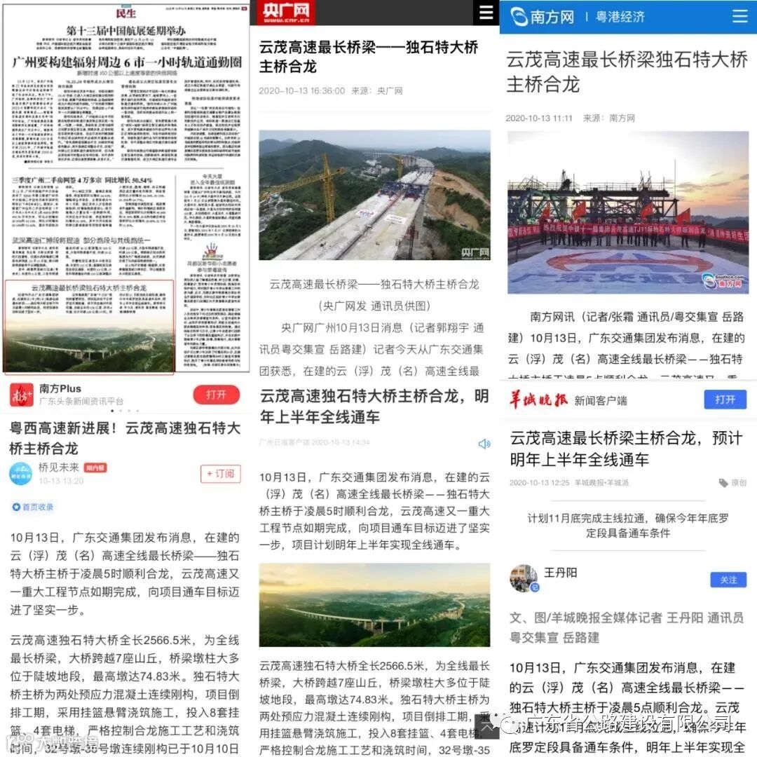 云茂高速独石特大桥全长2566.5米,为全线最长桥梁,大桥跨越7座山丘,桥梁墩柱大多位于陡坡地段,最高墩达74.83米。