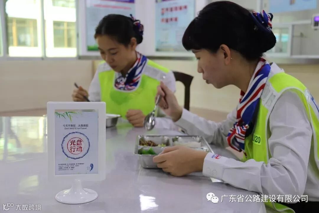在广深公司各生活区爱心食堂的餐桌上都摆放“光盘行动”提示牌,时刻提醒员工要文明用餐,杜绝“