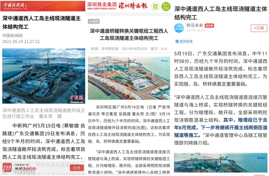 5月19日11点58分,历经九个半月的时间,深中通道西人工岛现浇隧道敞开段浇筑完成,标志着项目西人工岛主线现浇隧道主体结构完工,为实现隧、岛、桥转换奠定重要基础。