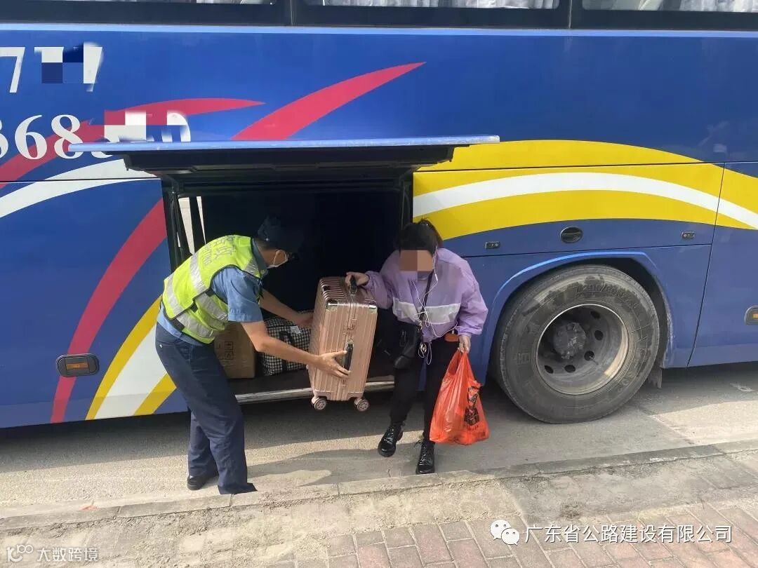 路政员帮助乘客转移行李
