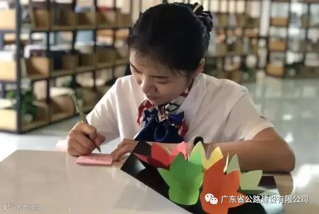 广珠段收费员王庆琳亲手制作赠与母亲的贺卡。在她给母亲的信中写到,我每天都感到很幸福,希望您也是!——您的女儿庆琳。