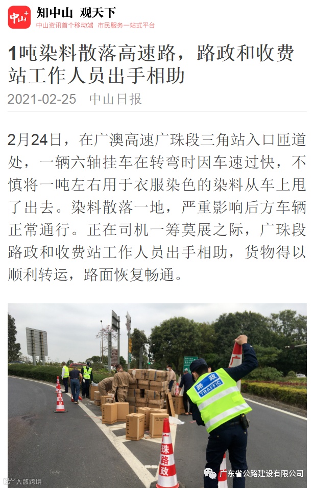 1吨染料被甩出车厢,广珠段紧急处置保畅通