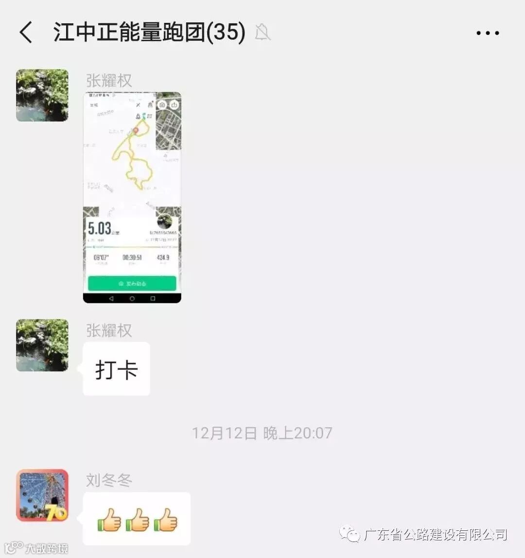 “江中正能量跑步团”有一个团员间约定俗成的团规,每位固定团员需每周完成一次5公里的打卡,将跑步记录截图并在微信群进行分享,35位团员均能按要求完成打卡,并且有过半的团员还超额完成任务。