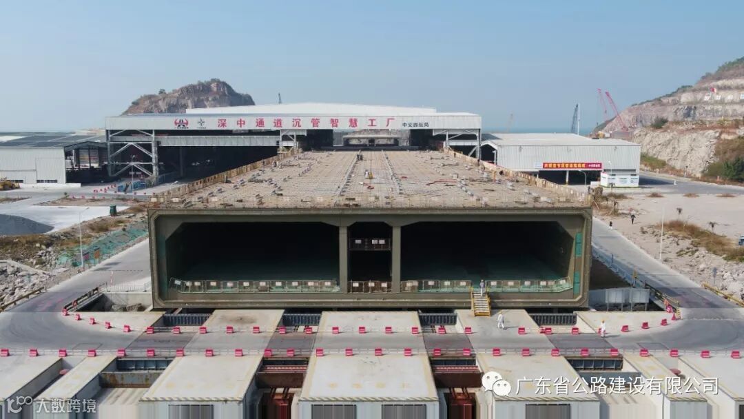 桂山镇牛头岛沉管预制智慧工厂进行预制。首个沉管混凝土浇筑及纵移成功,攻克了项目钢壳沉管混凝土施工关键技术难题,标志着深中通道隧道工程钢壳混凝土沉管正式进入流水线生产。同时,E1作为连接人工岛和海底隧道的首节沉管,也为跨海通道海底安装开启了重要一步。按照计划,首个E1管节将于2020年初完成一次舾装作业后, 3月横移至深坞区,预计明年上半年完成沉放作业。