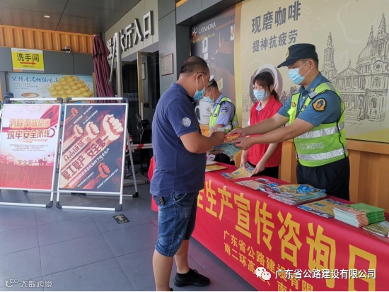 广珠段公司在沿线收费广场、民众服务区开展安全生产宣传咨询日活动,向司乘人员大力宣传交通运输安全生产法律法规、安全基本常识