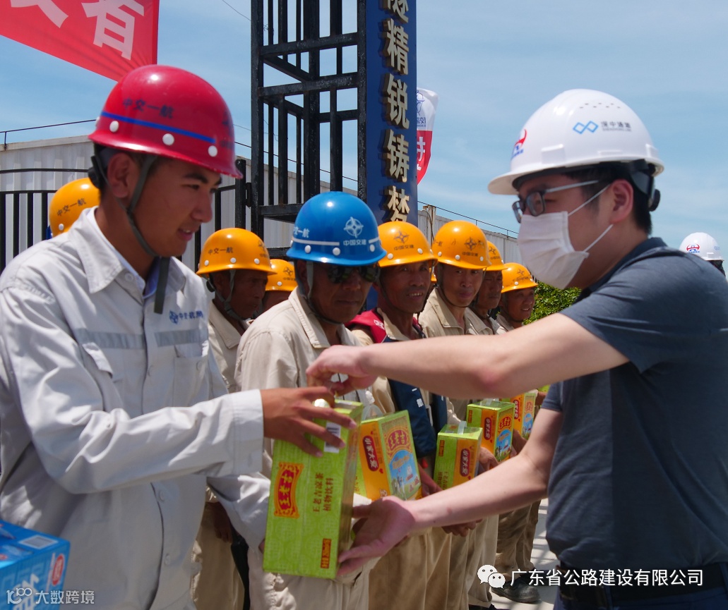 6月22日上午,广东省交通工会主席廖星率队到深中通道项目建设一线,慰问建设者,并向建设者致以端午节前祝福与问候。