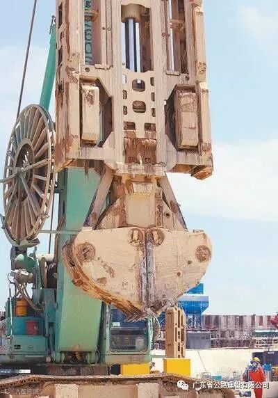 4月30日,深中通道东人工岛工程现场,巨型成槽机正在作业,工人在观察机器运行情况。贺林平 罗珣 摄影报道