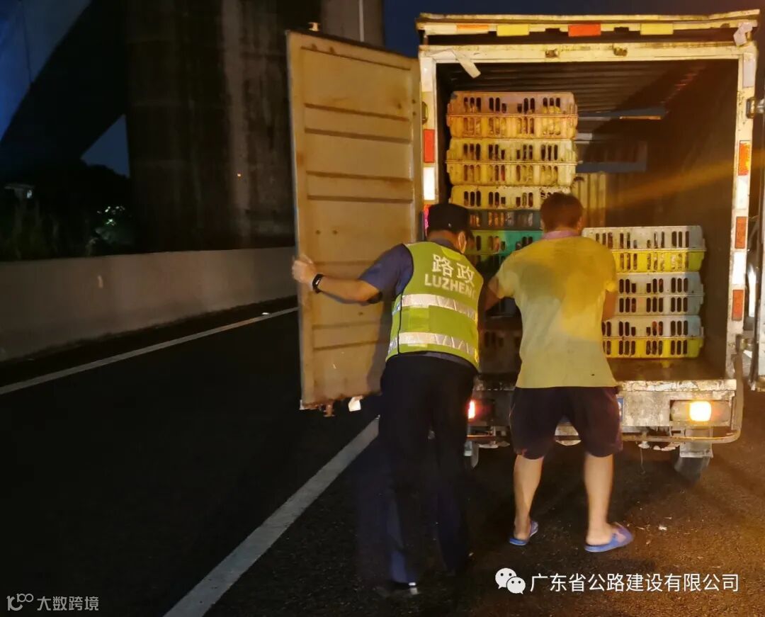 货车侧翻,广珠西线路政及时出手