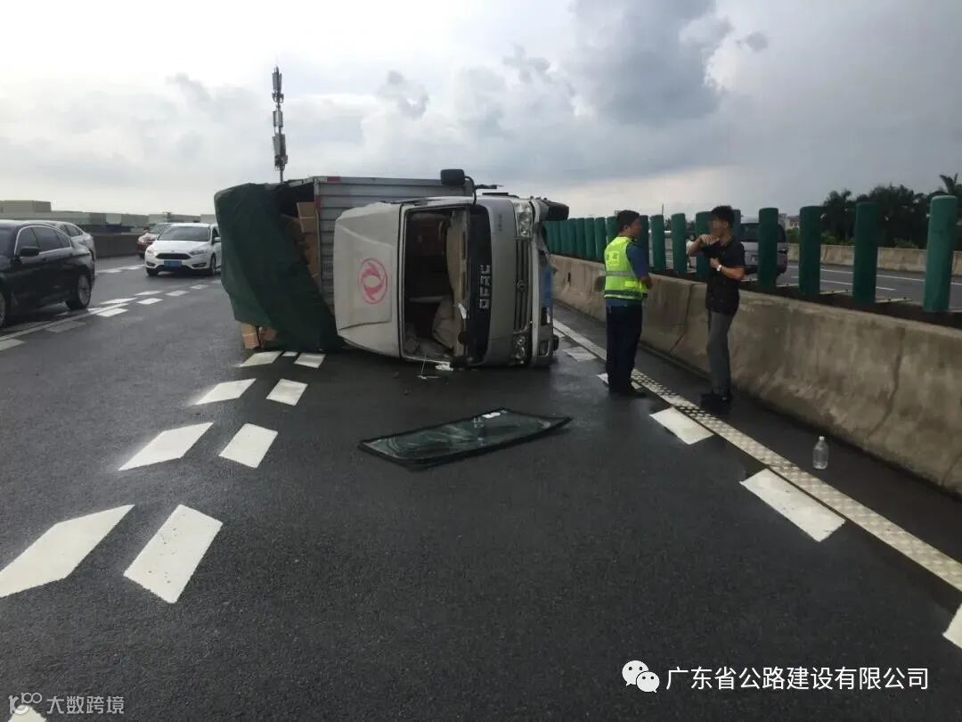 货车侧翻,南沙大桥路政及时清理救援