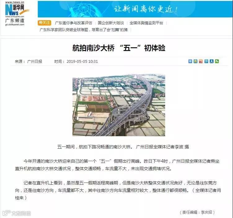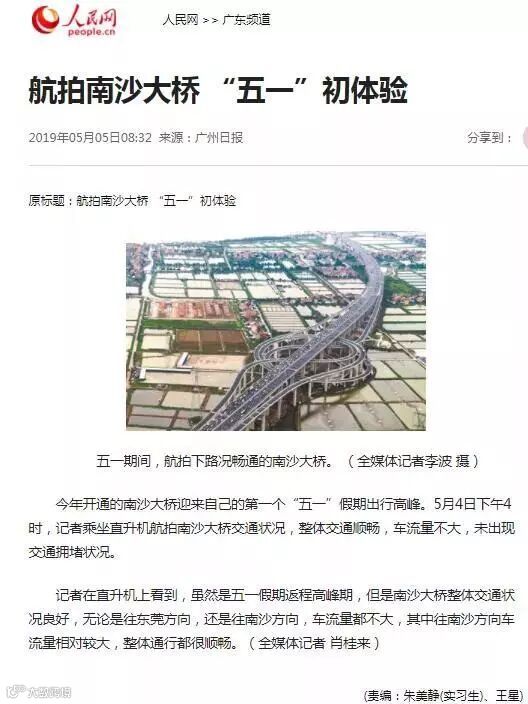 央视新闻:南沙大桥迎来返程车流高峰