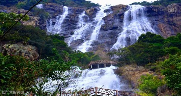 从山脚至瀑布源头仙姑天池,游客可依次到达观瀑台、瀑鸣台、亲瀑台、沐瀑台等多个赏瀑平台,近距离感受瀑布自身旁轰鸣而下的震撼,全身心体验沐浴瀑布水花、负离子清心洗肺的舒畅。