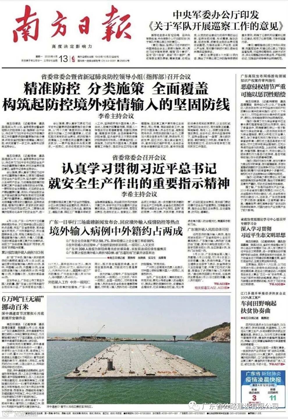 “今年是深中通道‘桥、岛、隧、水下互通’全面建设的关键之年,首节沉管顺利浮运沉放是今年的重中之重。接下来,项目会继续保持高度的责任感和强烈的忧患意识,在确保抓好疫情防控的情况下,充分发挥智能建造优势,提高产业效能,紧盯质量和安全两个关键,确保项目建设高效优质推进,将深中通道建设成为平安百年品质工程。”深中通道管理中心主任王啟铜表示。