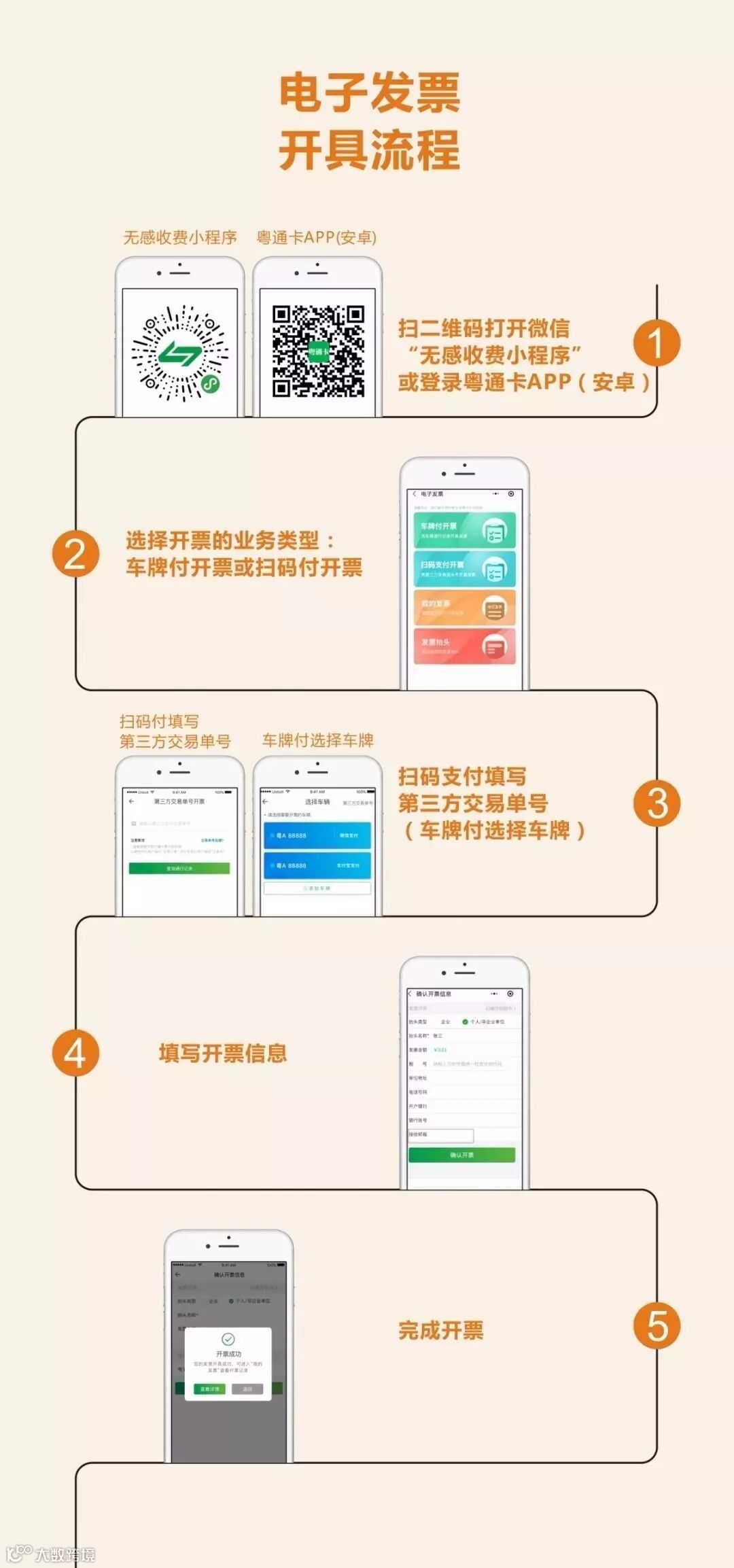 您可以登录粤通卡APP或无感收费微信小程序开具移动支付电子发票。扫码支付用户以第三方交易号开具,车牌付用户以车牌号开具。