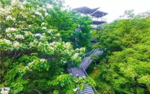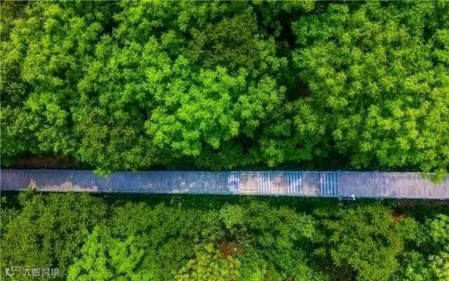 树木郁郁葱葱,栈道游龙般穿梭在树林中。穿行其中,满眼的绿色让人心旷神怡,张开双手你就能拥抱最清新的自然。