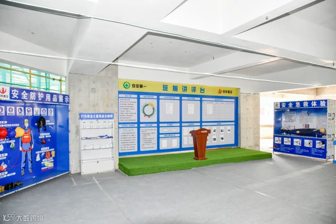 以“安全标准化、管理常态化”为核心,设置安全体验区、VR体验区等,通过沉浸式体验强化安全意识。落地双重预防机制,依托班前讲评台规范作业行为。标准化防护设施全覆盖,安全防护类强制配置率100%,搭配爬架自动化监测系统、智能安全帽等科技设备,提升安全管控智能化水平。