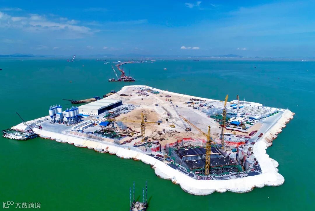 在深中通道西人工岛施工现场督导西小岛建设情况