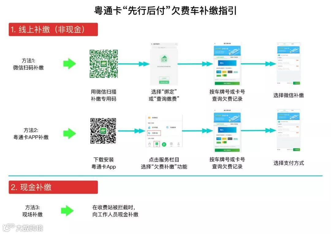 车辆在利用ETC“先行后付”快速通行的同时,应对所欠通行费进行补缴,目前已开通线上和现金两种模式共3种补缴方式,并由省联合电服公司先行通过短信或电话等方式通知用户,确保用户快速、便捷完成补缴工作。