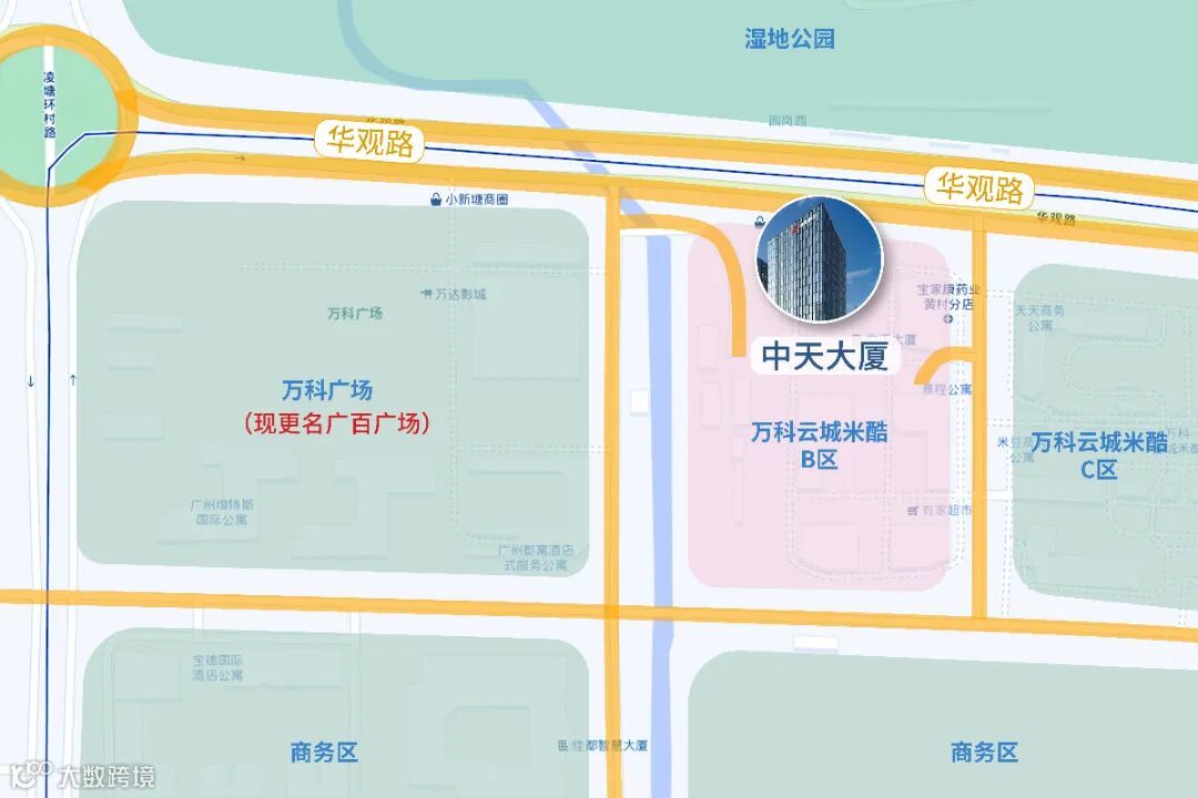 中天大厦位于广东省广州市天河区华观路万科云城米酷B1-1栋。