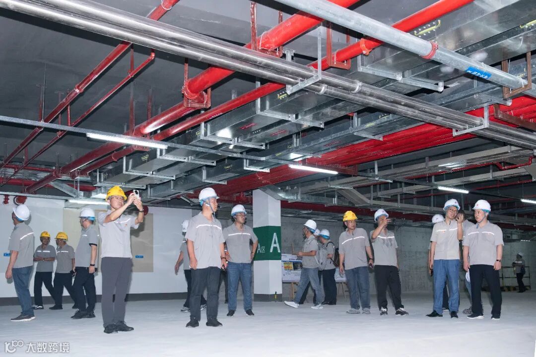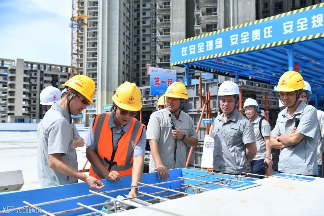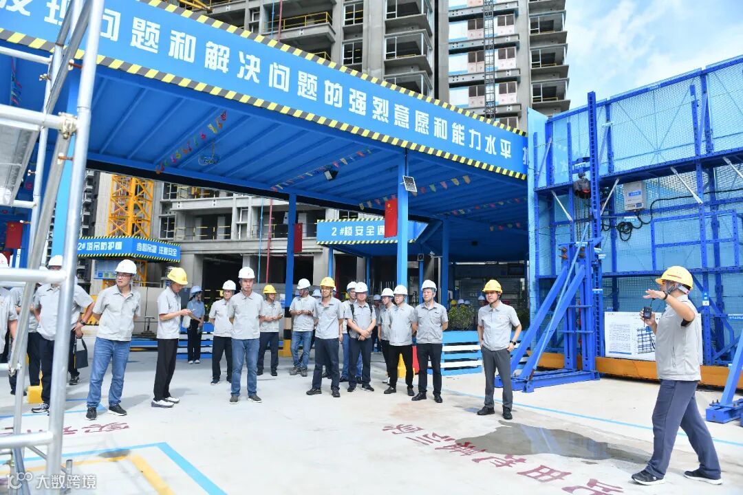 全体参会人员分组对星河湖山春晓项目进行现场观摩,从党建引领、劳务一站式管理、项目标准化管理、安全实训基地、质量安全精益建造管理体系、数智化建造、绿色建造等方面进行了观摩与交流。