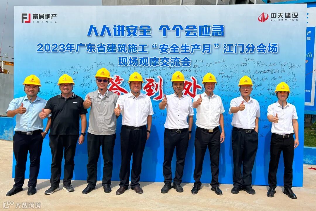 今年6月是全国第22个“安全生产月”,主题是“人人讲安全、个个会应急”。6月12日,广东省2023年建筑施工“安全生产月”和“安全生产南粤行”活动推进会暨现场观摩主会场交流会在广州召开,此次安全月活动全省共设深圳、汕尾、东莞、江门、佛山5个分会场,其中,江门分会场设在由中天建设集团承建的江门富居·禧公馆项目。