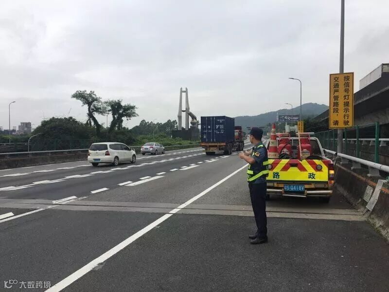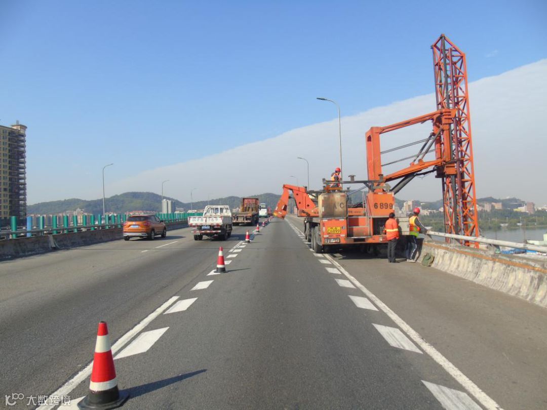 在实施荷载试验前,虎门大桥公司已对桥梁交通安全状况进行预估和分析,切实保证施工作业区域的交通安全,并在相关主线以及匝道放置好相应的标识标牌,提醒广大司乘人员按照规范要求行车。