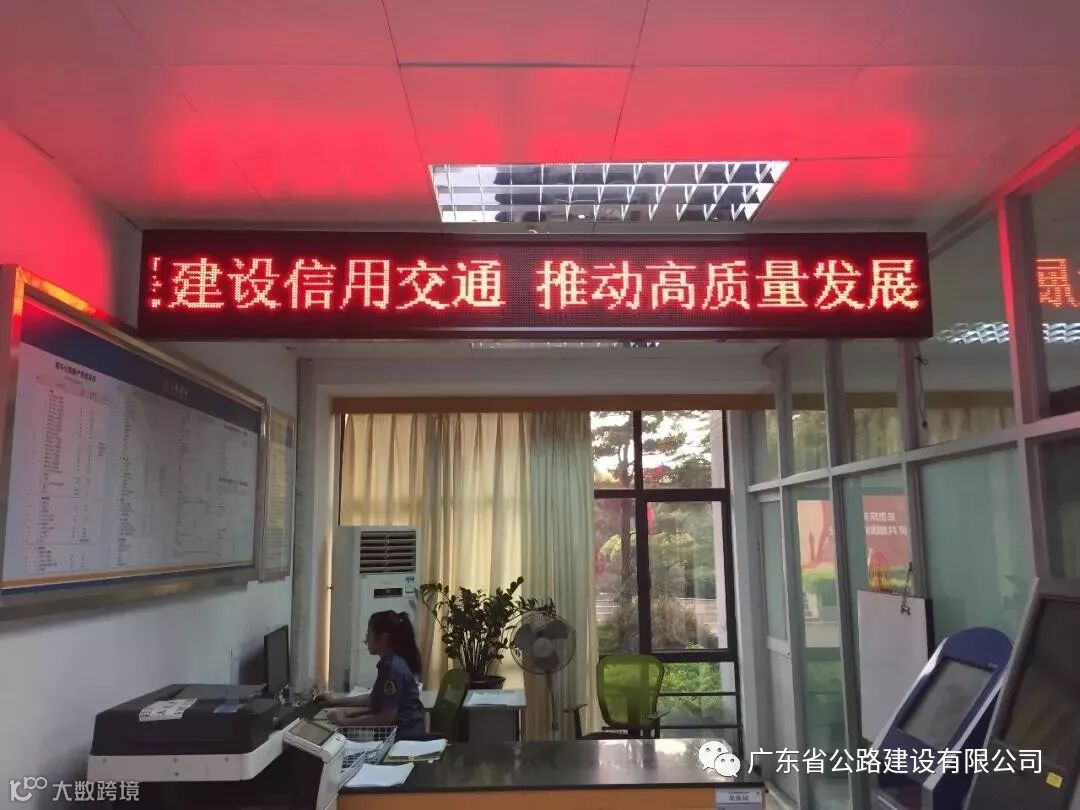 在路政服务窗口滚动播放宣传标语