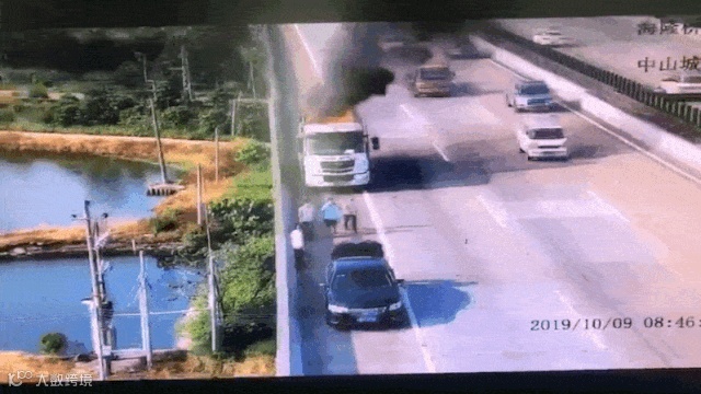 当天上午,货车司机谭某驾驶一辆货车从中山市大涌镇运输纱布到广州市增城新塘镇,行至广珠段海隆桥时,车上装载的纱布突然烧起来了。司机立马将车停至应急车道,从同行的一辆小车上拿取灭火器进行灭火。但由于纱布燃烧速度实在太快,不一会儿就蔓延至整个车身,就在他们感觉无能为力时,路政、消防人员相继赶到现场。
