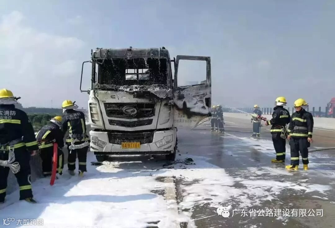 9月16日12点56分,在广珠北段石碁收费广场,一辆环卫标识货运车辆因天气高温及长时间行驶,造成轮胎温度过高而引发自燃。收费站当班人员与巡查的路政人员经过13分钟的奋力扑救,大火被成功扑灭。由于处置及时,车辆未产生较大损坏。