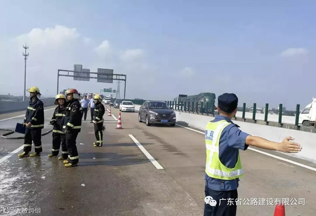 广珠段路政员黄宏振第一个到达事故现场,在确保现场的司乘人员转移到200米外的安全位置后,他迅速扛起路锥封闭应急车道和第三车道。为了保证消防车能够最快速度到达现场,他冒着滚滚浓烟和阵阵热浪,奋力疏导现场车流。