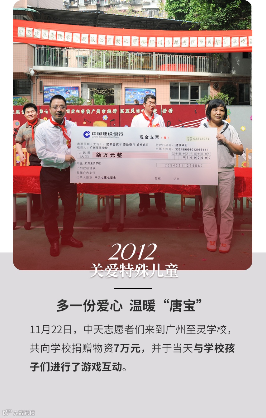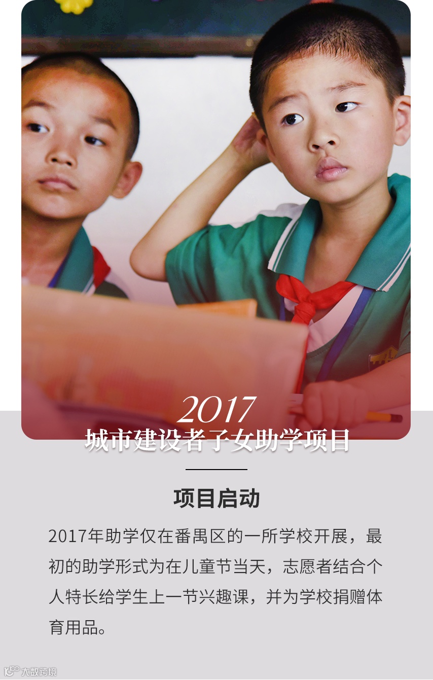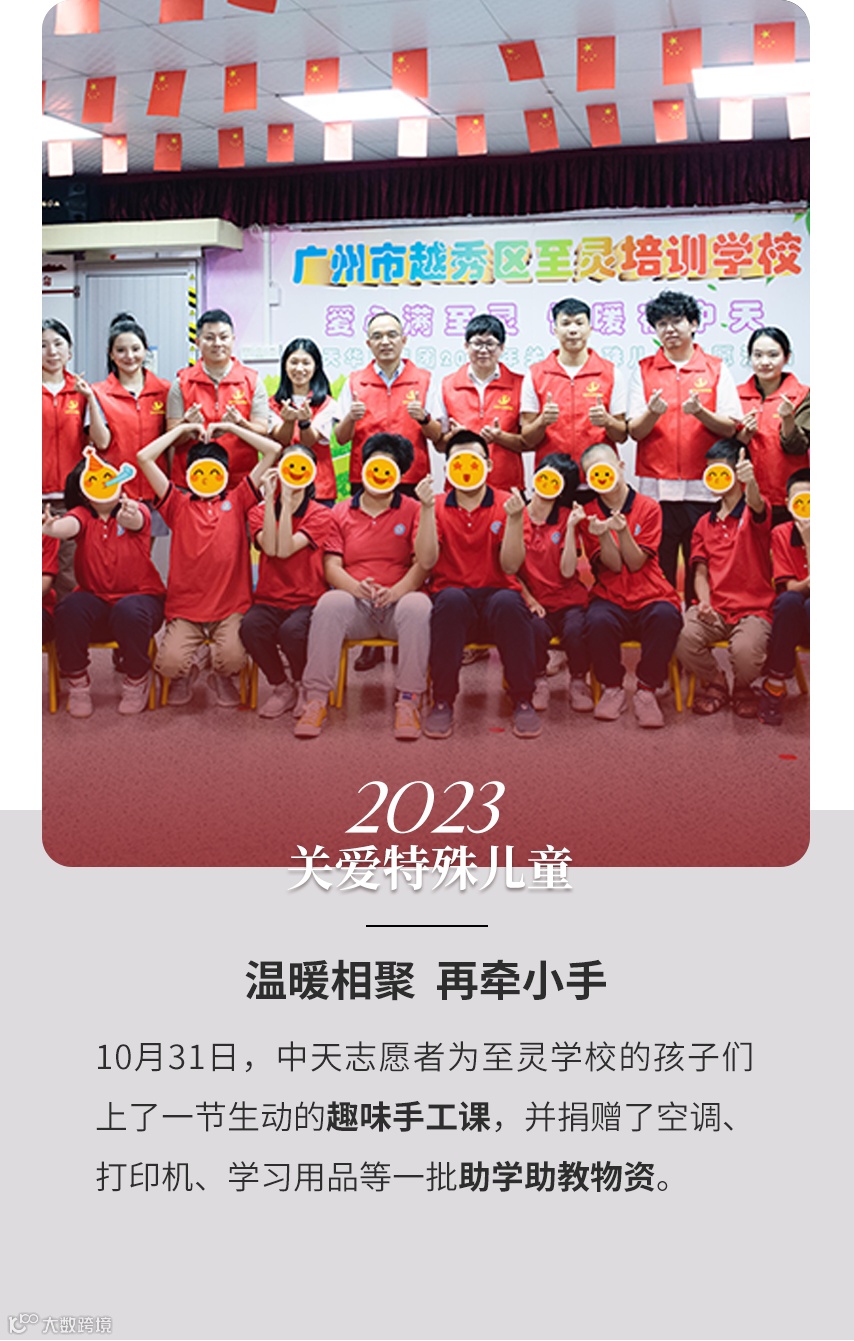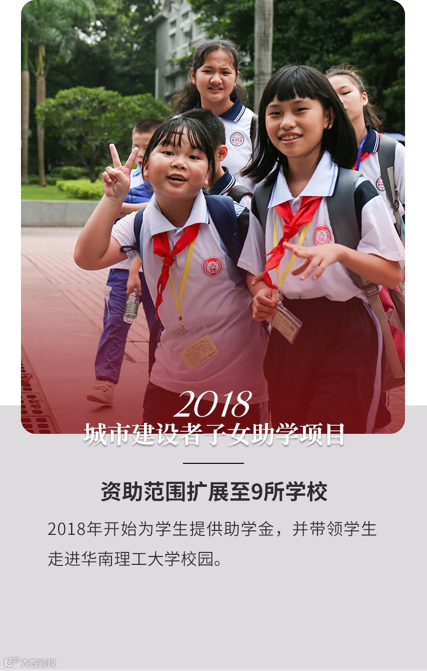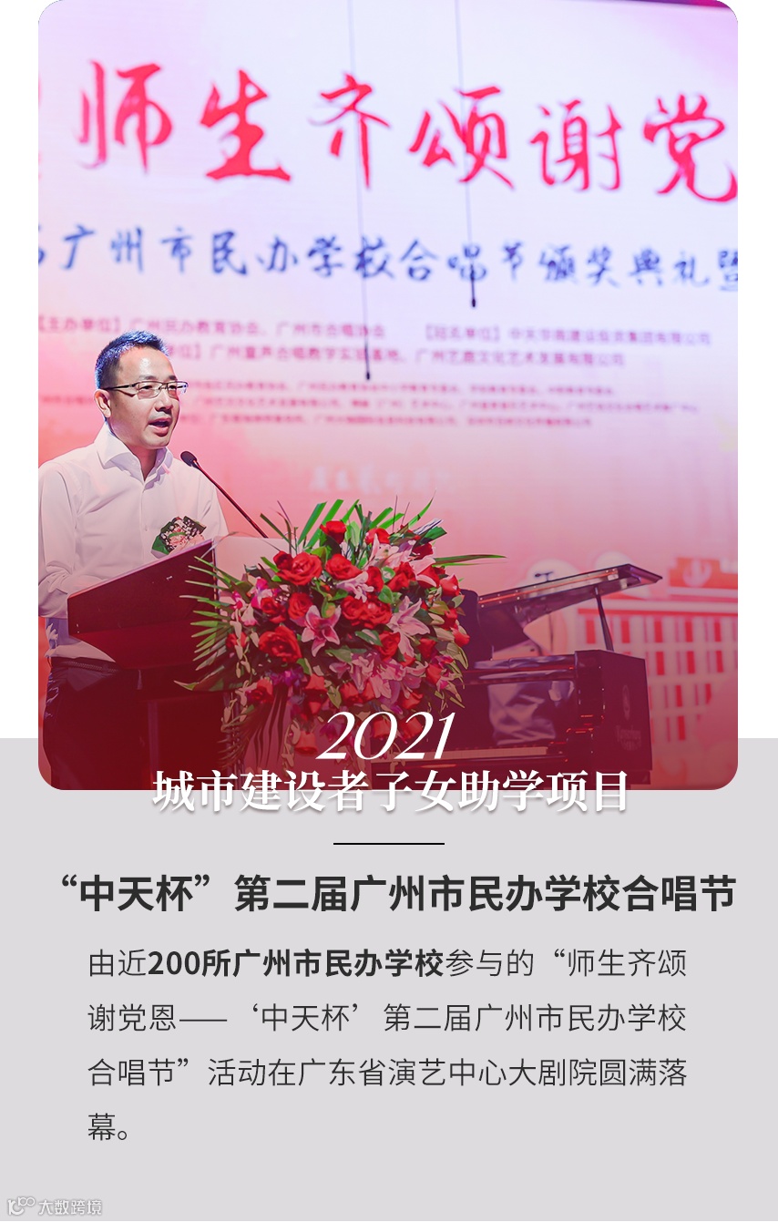 中天华南集团秉承“人人可慈善 人人应慈善”理念,自2017年开始实施“关爱城市建设者子女项目”,旨在帮扶广州市在民办学校就读的外来务工人员随迁子女,让他们享受更优质的教育资源。六年来助学人数近250人,总投入近100万元,关爱活动范围扩大至21所民办学校。