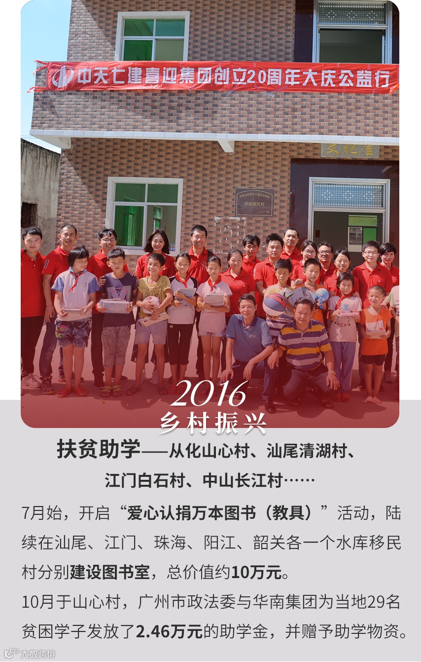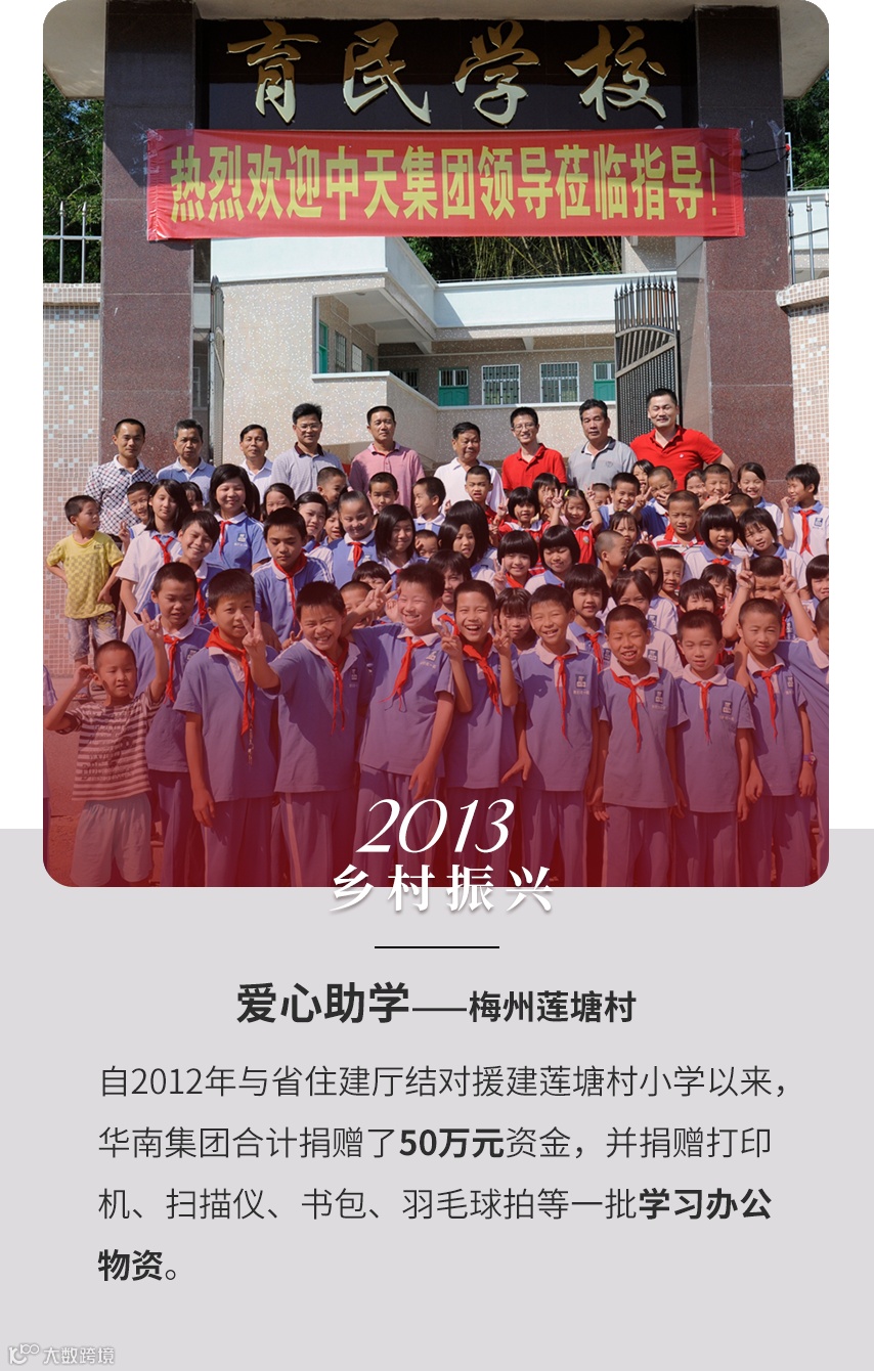 中天华南集团入粤以来多次深入乡村开展相关工作,足迹遍布广州、梅州、汕尾、江门、中山等地,支出超200万元,支持范围从修路、植树、捐书到修建学校、图书室等。
