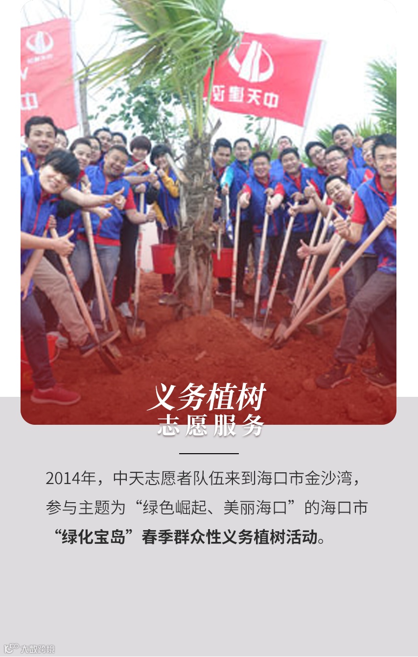 上世纪90年代,中天人入粤并逐步扎根广东、海南,随着城镇化浪潮席卷全国,中天人全力以赴投入到城市建设中,同时也肩负起企业公民的社会责任。二十五年来,中天华南人在抗疫救灾、扶贫帮困、志愿者、助学等领域持续履行责任。据不完全统计,近十年在公益慈善方面的各类支出超300万元,受助人数超300人,组建了超280人的志愿者队伍,开展志愿者活动超120次,累计开展志愿者时长近1500小时。
