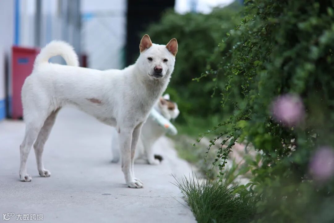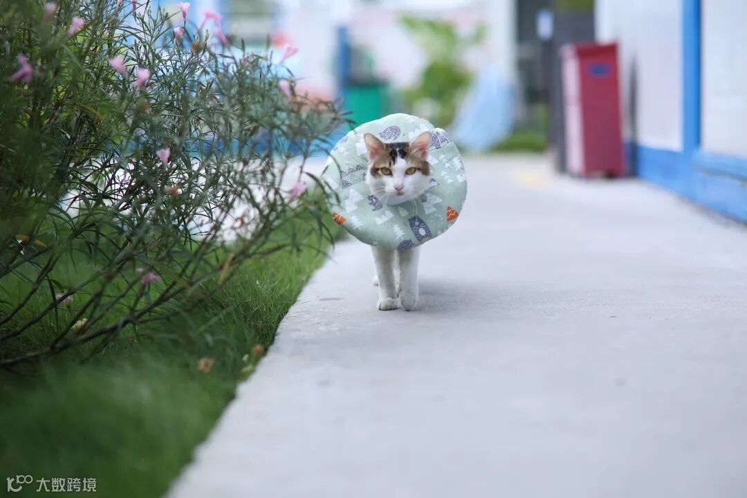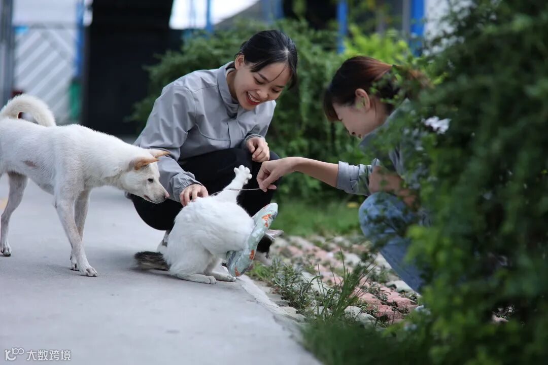 “带着猫圈的是大猫,因为它最近耳朵发炎了,这样可以预防二次感染;小猫是在施工现场基坑发现的,出生不到一个月,因为太小吃不了猫粮,我们就用热水泡开捣碎给它吃;狗狗小白是我们特地买回来看家护院的,特别爱热闹,喜欢在球场边看我们打篮球。”