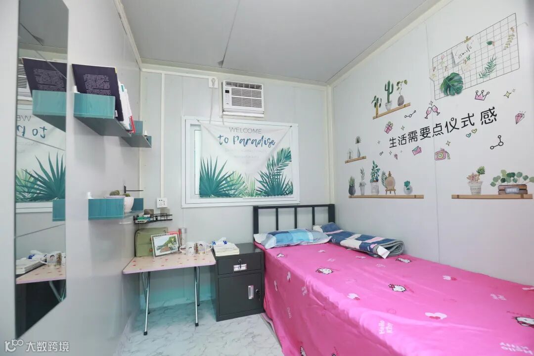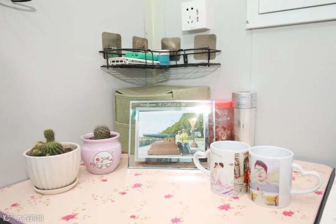 墙上的花饰、桌上的盆栽、海边捡的小小贝壳,让单人宿舍充满温情。
