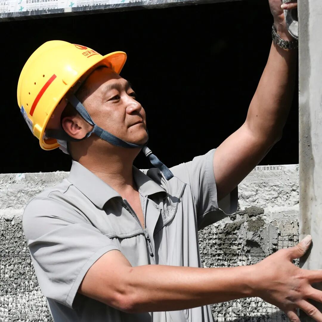 为了探索如何将误差控制在两毫米之内,龚庭刚抽调了班组里手艺最好的师傅,组建了攻关小队,研究如何提升技法和技能。于是,在项目现场,龚庭刚亲自拿着砌刀和工友一起实验、工作的场景,成为了一道靓丽的风景。