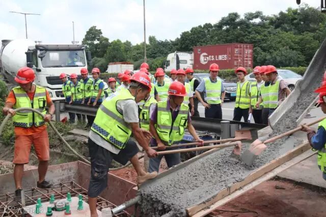 6月28日,广深公司及广珠段公司同步进行了ETC门架系统基础开挖工作,6月29日进行扎筋、支模及法兰盘安装工作,7月1日上午完成了浇筑工作。
